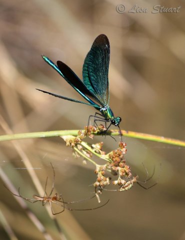 Beautiful demoiselle,Calopteryx virgo meridonalis, and spiders