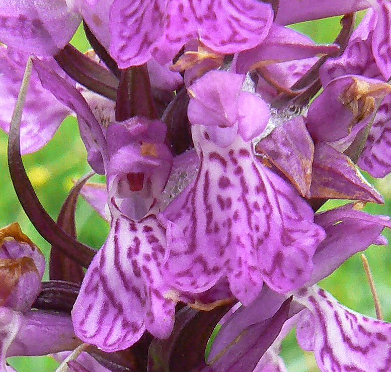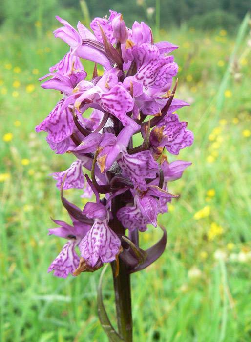 From the Greek meaning finger-like root, the Dactylorhiza genus was split from the Orchis genus partly due to the lobed tubers. Of the seven species growing in the Picos de Europa (with a propensity to hybridise among some of them), incarnata is one of the largest with showy spikes of up to 50 flowers on each.